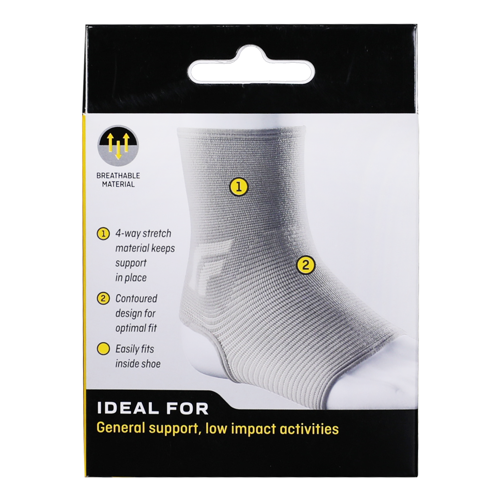 هذا الدعامة الكاحل المصنوعة من نسيج مطاطي مريح تسمح بمرور الهواء، والتصميم الضاغط يناسب معظم الأحذية ليقدم ارتداء مريح وطويل الأمد.