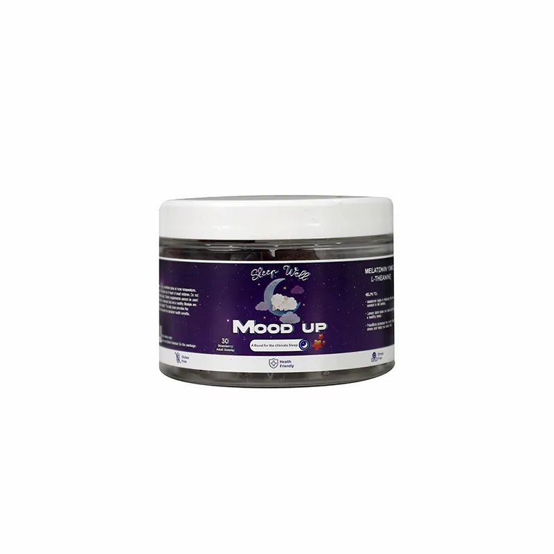 تحتوي حبوب Mood Up Gummies على الميلاتونين، وهو هرمون طبيعي يُنتج في الجسم يساعد في تخفيف مشاكل النوم والأرق.