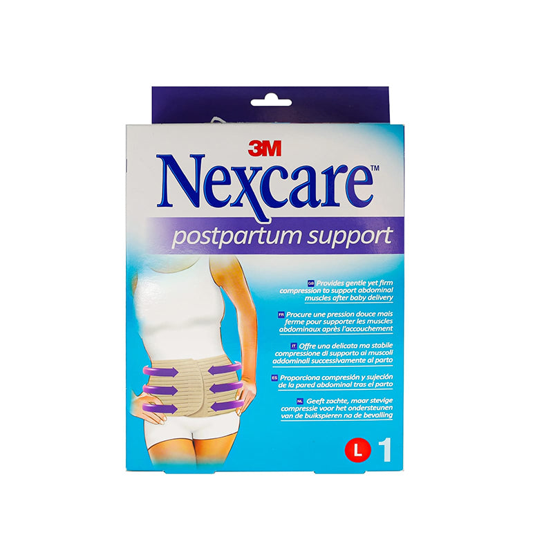 دعم ما بعد الولادة من Nexcare مصنوع من مواد ناعمة جدًا توفر ضغطًا لطيفًا ومستمرًا لدعم عضلات البطن بعد الولادة.