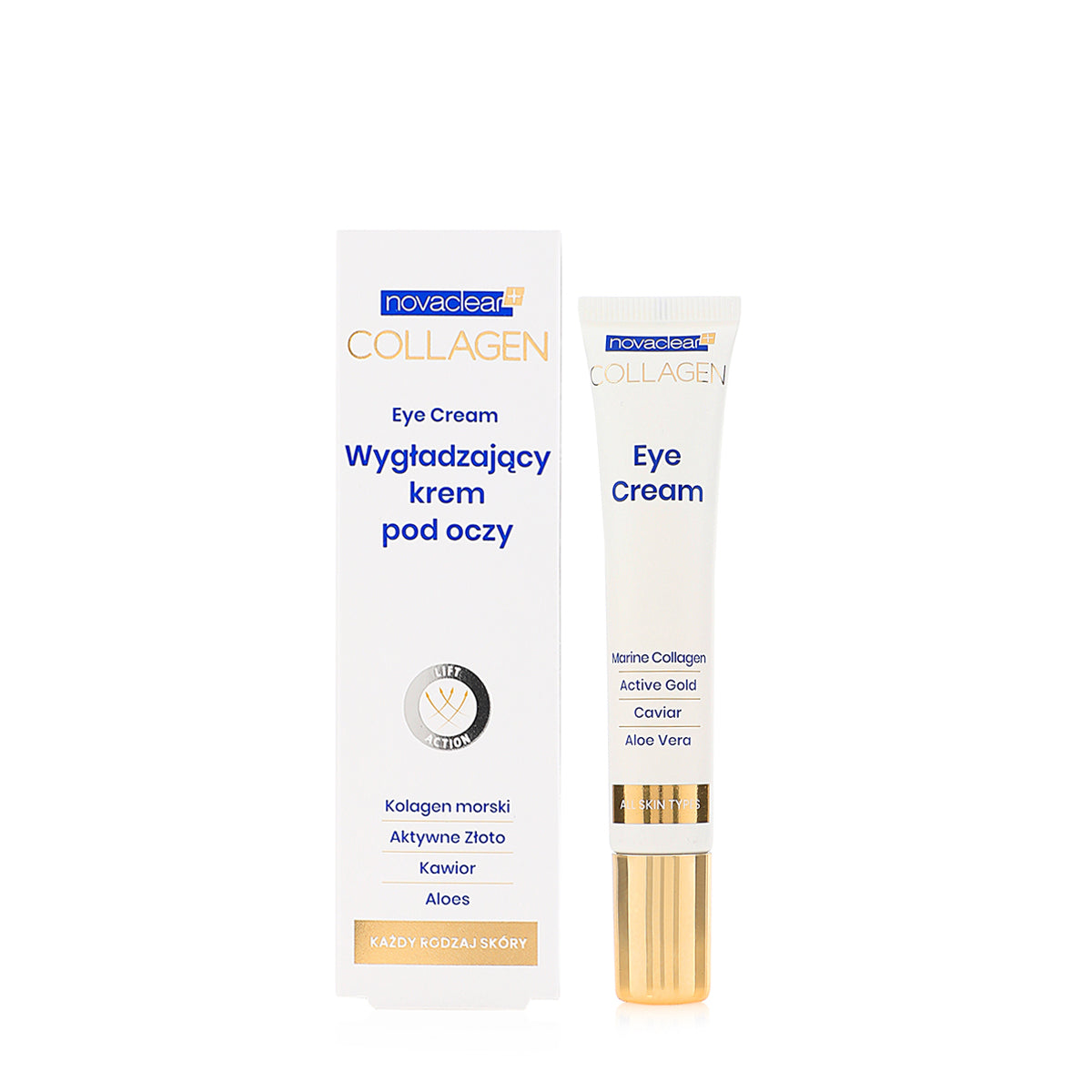 كريم العين نوفاكليير كولاجين هو كريم رفع للعين مناسب لجميع أنواع البشرة وخاصة لمن تفتقر إلى الثبات والإشراق، يحتوي على تركيز عالٍ من الذهب النشط والكولاجين البحري يساعد في تقليل ظهور الخطوط الدقيقة والتجاعيد. الصيغة الغنية بخلاصة الكافيار والألوة تنعم وتغذي أكثر المناطق حساسية. مزيج زيت الأفوكادو وزيت المكاديميا مع زبدة الشيا يرطب البشرة بعمق وينعمها. الألانتوين والبانثينول يهدئان التهيج.
