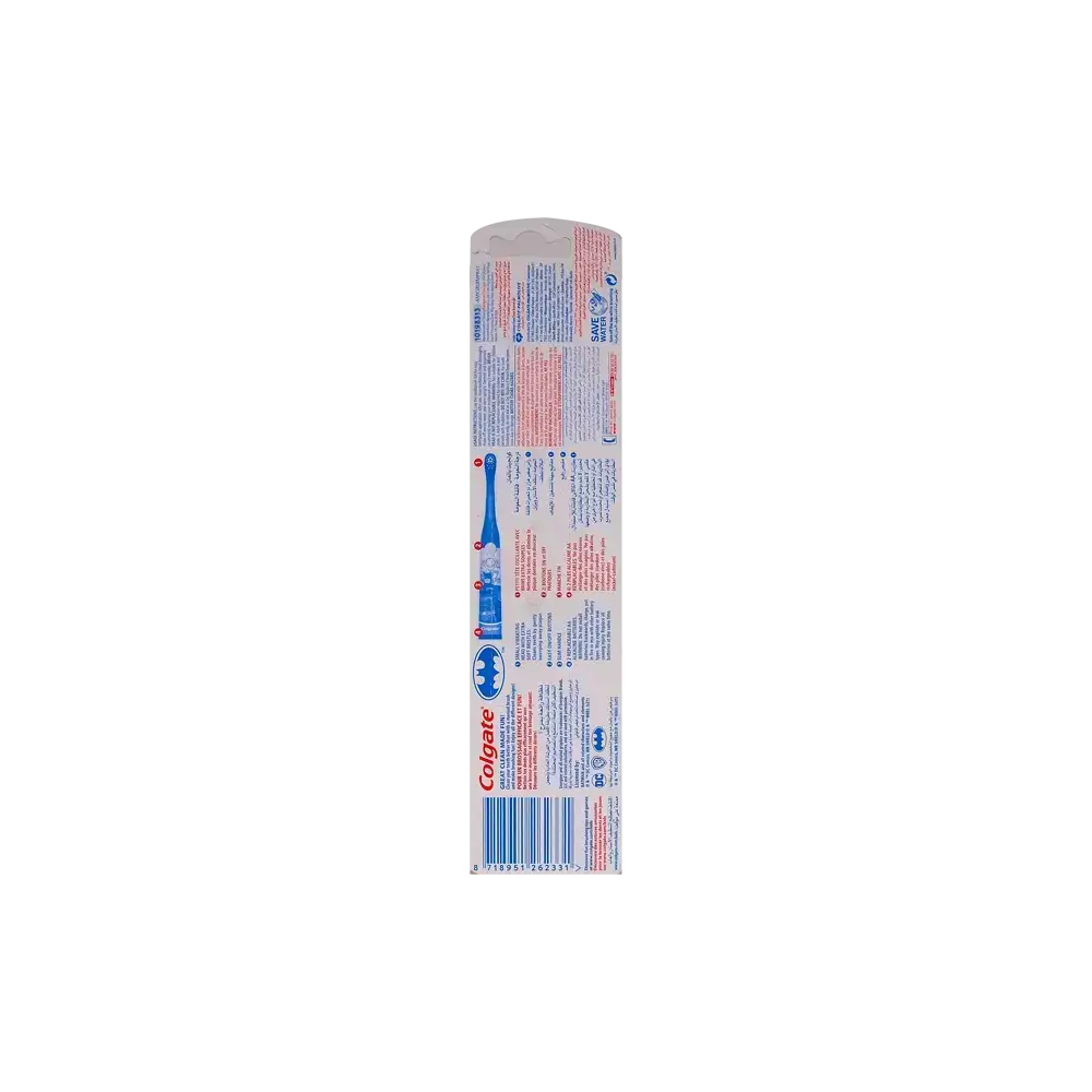 فرشاة أسنان كولجيت للأطفال تعمل بالبطارية ومصممة لتشجيع الأطفال الذين تبلغ أعمارهم 6 سنوات فما فوق على تنظيف أسنانهم والحفاظ على نظافة الفم.