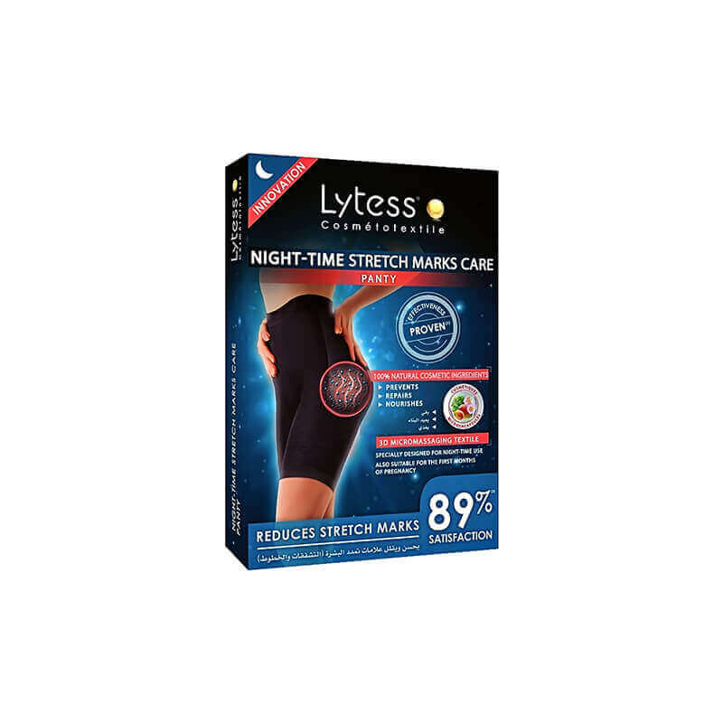 تُطلق المكونات الفعالة في سراويل العناية بعلامات التمدد الليلية من Lytess تدريجياً في الجلد خلال الليل لعلاج علامات التمدد على البطن، والوركين، والأرداف، والفخذين.