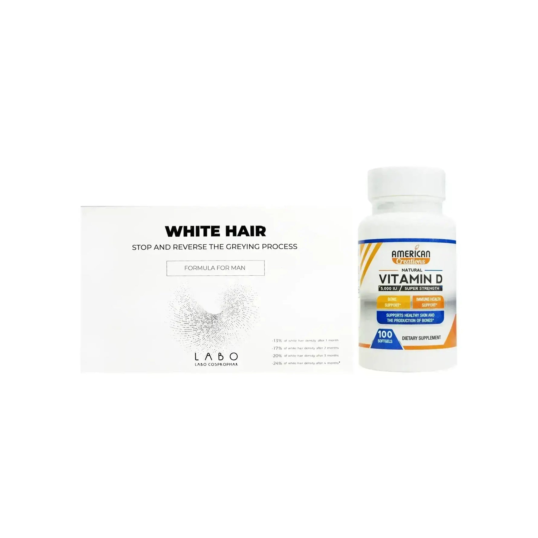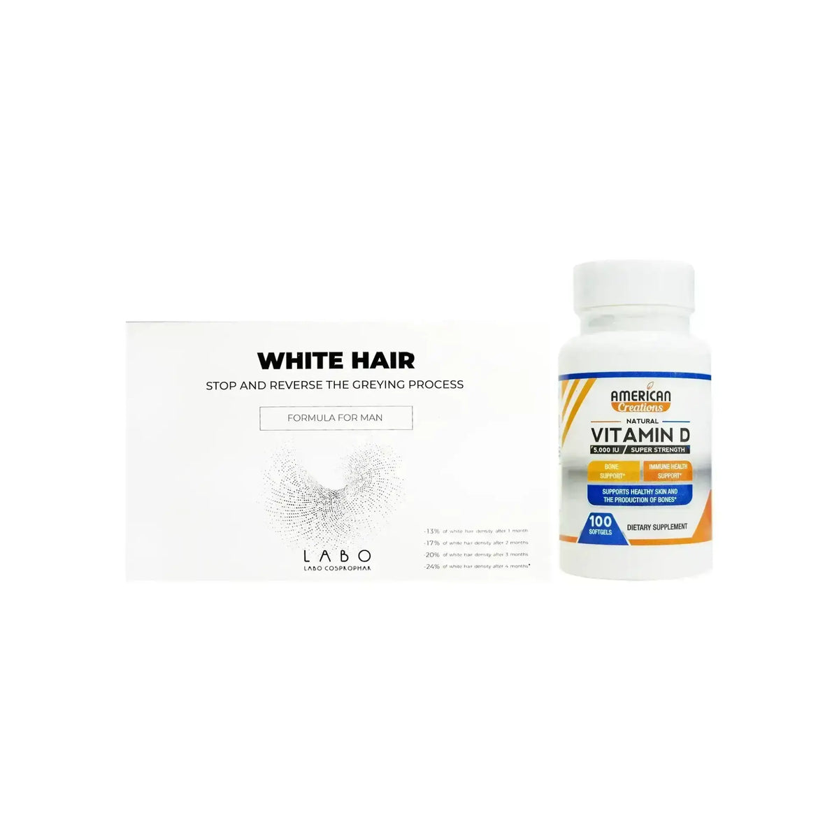 حزمة رجل شعر أبيض كريسيان + فيتامين د أمريكان كرييشن