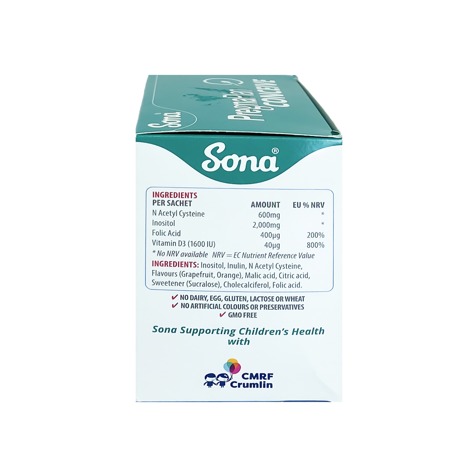 بالإضافة إلى N ACETYL CYSTEINE و INOSITOL ، يوفر سونا بريجنابلان كونسيب أيضًا مغذيات مثل حمض الفوليك وفيتامين D3 ، الضروريين لحمل صحي