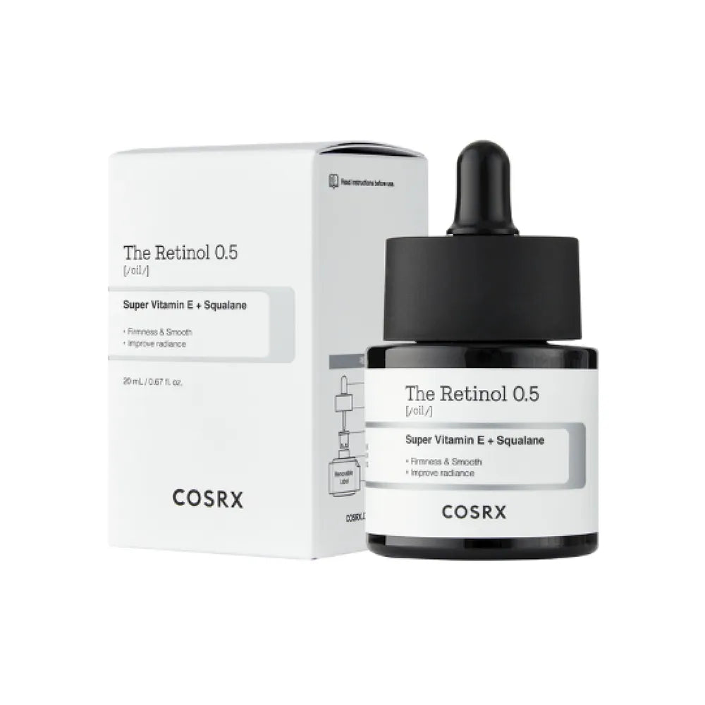 COSRX Retinol 0.5 Oil, formulated with a potent dose of pure retinol, helps reduce the appearance of enlarged pores and blackheads.