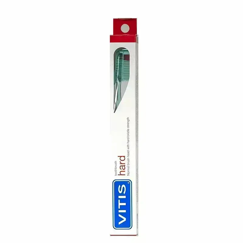 Vitis Hard Toothbrush is designed for daily use and features hard bristles for efficient cleaning of teeth and interdental spaces.