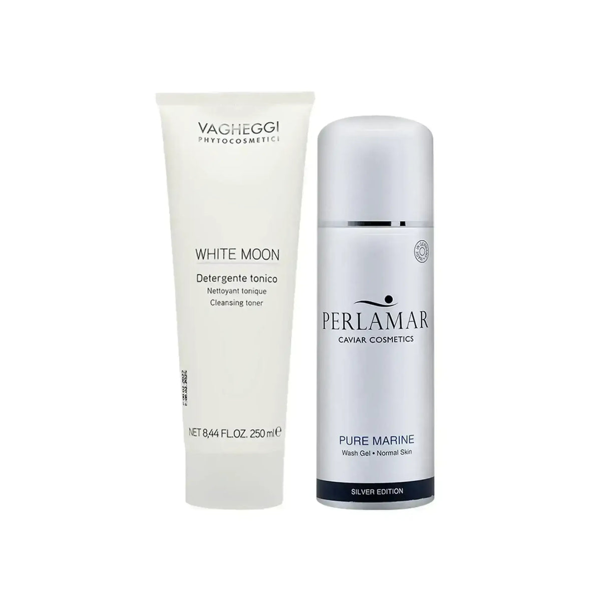 package Perlamar Pure Marine Wash Gel Normal Skin + Vaghessi White Moon Toner
